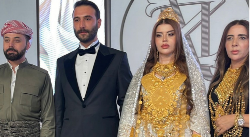 اضطرت عروس عراقية إلى الجلوس خلال حفل زفافها في مدينة شانلي أورفا التركية، بعدما أثقلتها كميات كبيرة من الذهب التي كانت ترتديها أثناء المراسم.